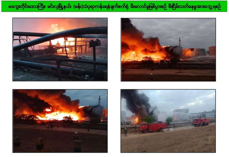 မကွေးတိုင်းဒေသကြီး၊ မင်းလှမြို့နယ်ရှိ ရေနံဓာတုဗေဒစက်ရုံစု(သံပရာကန်)၌ ယနေ့နံနက် ၆ နာရီ၊ ၅ မိနစ်ခန့်တွင် စတင်မီးလောင်ကျွမ်းမှုဖြစ်ပွားခဲ့ရာ စက်ရုံရှိမီးသတ်ဝန်ထမ်းများနှင့် စက်ရုံဝန်ထမ်းများ၊ တပ်နယ်၊ ခရိုင်၊ မြို့နယ်များရှိ မီးသတ်တပ်ဖွဲ့ဝင်များဖြင့် အတူပူးပေါင်းပြီး ဝိုင်းဝန်းငြှိမ်းသတ်နိုင်ခဲ့မှုကြောင့် နံနက် ၇ နာရီအချိန်တွင် မီးငြှိမ်းသတ်နိုင်ပြီး လက်ရှိအချိန်တွင် ကုန်ထုတ်လုပ်မှုလုပ်ငန်းများ ပုံမှန်ပြန်လည်လည်ပတ်လျက်ရှိသည်။