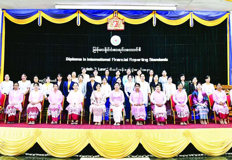မြန်မာနိုင်ငံစာရင်းကောင်စီမှကြီးမှူး၍ ပြည်ထောင်စုစာရင်းစစ်ချုပ်ရုံး အဆင့်မြင့်စာရင်းကိုင်နှင့် စာရင်းစစ်သင်တန်းကျောင်း နေပြည်တော်တွင်ဖွင့်လှစ်သည့် နိုင်ငံပိုင်ကဏ္ဍအတွက် နိုင်ငံတကာဘဏ္ဍာရေးအစီရင်ခံခြင်းစံများ ဒီပလိုမာသင်တန်းအမှတ်စဉ်(၂) အပိုင်း(၂) (Diploma in International Financial Reporting Standards - Dip IFRS) သင်တန်းဆင်းပွဲအခမ်းအနားကို ယနေ့နံနက်ပိုင်းတွင် နေပြည်တော်ရှိ ပြည်ထောင်စုစာရင်းစစ်ချုပ်ရုံးနဝရတ်ခန်းမ၌ Hybrid စနစ်ဖြင့် ကျင်းပသည်။