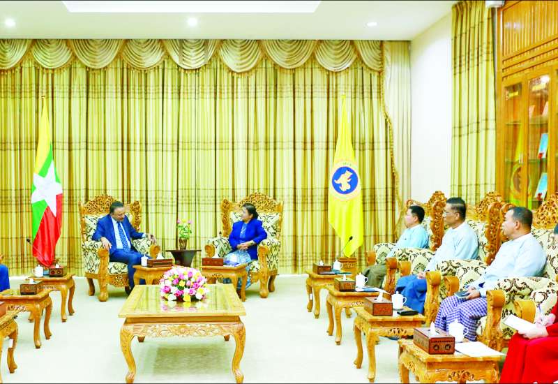 ကာကွယ်ရေးဝန်ကြီးဌာန ပြည်ထောင်စုဝန်ကြီး ဗိုလ်ချုပ်ကြီး မောင်မောင်အေးအား ဘယ်လာရုစ်ကာကွယ်ရေးဝန်ကြီးဌာန နိုင်ငံတကာစစ်ဘက် ပူးပေါင်းဆောင်ရွက်ရေးဌာနကြီး၏ အကြီးအကဲနှင့် လက်ထောက်ကာကွယ်ရေးဝန်ကြီး Major General Valeriy Aleksandrovich Revenko က ယနေ့မွန်းလွဲပိုင်းတွင် ပြည်ထောင်စုဝန်ကြီးရုံး ဧည့်ခန်းမ၌ ဂါရဝပြုလာရောက်တွေ့ဆုံသည်။
