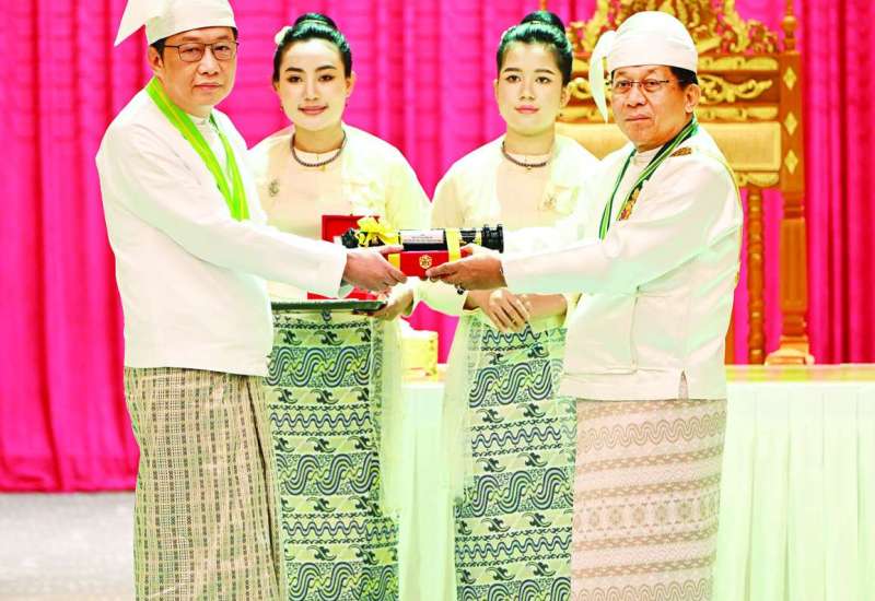 တပ်မတော်စွမ်းရည်သတ္တိဆိုင်ရာ ဂုဏ်ထူးဆောင်တံဆိပ်များ ချီးမြှင့်အပ်နှင်းခြင်းအခမ်းအနားကို ယနေ့မွန်းလွဲပိုင်းတွင် နေပြည်တော်ရှိ ဇေယျာသီရိဗိမာန်၌ ကျင်းပပြုလုပ်ရာ နိုင်ငံတော်လုံခြုံရေးနှင့်အေးချမ်းသာယာရေးကော်မရှင်ဥက္ကဋ္ဌ တပ်မတော်ကာကွယ်ရေးဦးစီးချုပ် ဗိုလ်ချုပ်မှူးကြီး သတိုးမဟာသရေစည်သူ သတိုးသီရိသုဓမ္မ မင်းအောင်လှိုင် တက်ရောက်မိန့်ခွန်းပြောကြားပြီး ဂုဏ်ထူးဆောင်တံဆိပ်များကို ချီးမြှင့်အပ်နှင်းပေးသည်။