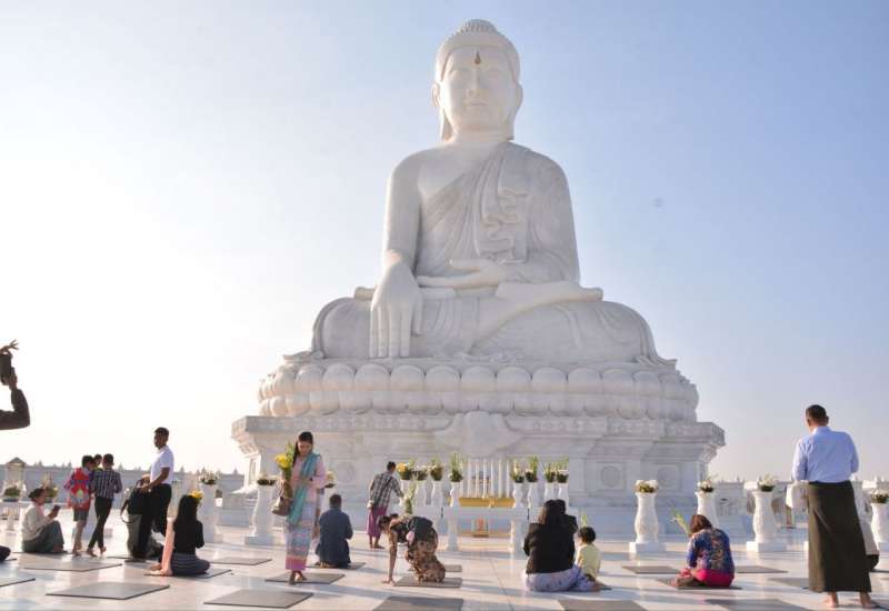 တပ်မတော်စွမ်းရည်သတ္တိဆိုင်ရာ ဂုဏ်ထူးဆောင်တံဆိပ်ချီးမြှင့်အပ်နှင်းခြင်းခံရသော အရာရှိ၊ စစ်သည်များနှင့် အမွေခံမိသားစုဝင်များသည် ယနေ့နံနက်ပိုင်းတွင် ပြည်ထောင်စုနယ်မြေ၊ နေပြည်တော်၊ ဒက္ခိဏသီရိမြို့နယ်ရှိ ဗုဒ္ဓဥယျာဉ်ဝတ္ထုကံတော်တွင် တည်ထားပူဇော်သည့် ကမ္ဘာပေါ်ရှိထိုင်တော်မူ ကျောက်ဆစ်ဗုဒ္ဓရုပ်ပွားတော်များအနက် ဉာဏ်တော်အမြင့်ဆုံးဖြစ်သည့် မာရဝိဇယဗုဒ္ဓရုပ်ပွားတော်မြတ်ကြီးအား ဖူးမြော်ကြည်ညိုကြပြီး ဘုရားရင်ပြင်တော်ပတ်လည်၌ စကျင်ကျောက်များအသုံးပြု၍ တည်ဆောက်ထားသည့် ဂန္ဓကုဋိတိုက်များအတွင်း ကြည့်ရှုလေ့လာကြသည်။