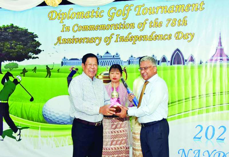 ၂၀၂၆ ခုနှစ် (၇၈) နှစ်မြောက် လွတ်လပ်ရေးနေ့အထိမ်းအမှတ် သံတမန်ဂေါက်သီးရိုက်ပြိုင်ပွဲကို ယနေ့နံနက်ပိုင်းက နေပြည်တော်ရှိ ရေပြာဂေါက်ကွင်း၌ နိုင်ငံခြားရေးဝန်ကြီးဌာနက ကြီးမှူး၍ ကျင်းပရာ နိုင်ငံခြားရေးဝန်ကြီးဌာန ပြည်ထောင်စုဝန်ကြီး၊ ဒုတိယဝန်ကြီးများ၊ ရန်ကုန်မြို့အခြေစိုက် ပြည်ပသံရုံးများမှ သံတမန်များ၊ ပြိုင်ပွဲဝင်အားကစားသမားများနှင့် အထူးဖိတ်ကြားထားသည့် ဧည့်သည်တော်များ ဝင်ရောက်ယှဉ်ပြိုင်ခဲ့ကြသည်။
