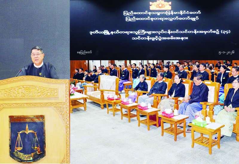 ပြည်ထောင်စုတရားစီရင်ရေးဥပဒေကို ပဉ္စမအကြိမ် ပြင်ဆင်သည့် ဥပဒေ (မူကြမ်း) နှင့် စပ်လျဉ်းသည့် အပြီးသတ်ညှိနှိုင်းအစည်းအဝေးကို ယနေ့နံနက် ၁၀ နာရီတွင် နေပြည်တော်ရှိ ဥပဒေရေးရာဝန်ကြီးဌာန အစည်းအဝေးခန်းမ၌ ကျင်းပသည်။