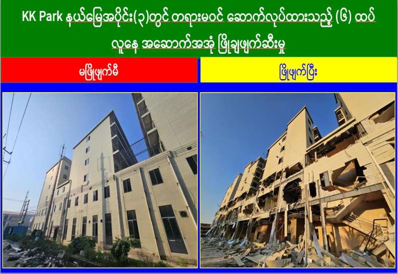 မြန်မာနိုင်ငံအစိုးရအနေဖြင့် အွန်လိုင်းလိမ်လည်လောင်းကစားမှုများ အများဆုံးအခြေချလုပ်ကိုင် လျက်ရှိကြသည့် ရွှေကုက္ကိုလ် နယ်မြေနှင့် KK Park နယ်မြေများရှိ တရားမဝင်အဆောက်အအုံများအတွင်း ဝင်ရောက်ရှင်းလင်း၍ အွန်လိုင်းလိမ်လည် လောင်းကစားမှု လုပ်ငန်းစဉ်များတွင်အသုံးပြုခဲ့သည့် သိမ်းဆည်းရမိပစ္စည်းများနှင့် တရားမဝင် အဆောက်အအုံများအား စနစ်တကျ ဖြိုချဖျက်ဆီးခြင်းများကို အဖွဲ့စုံပါဝင်သည့် ပူးပေါင်းအဖွဲ့ဖြင့် ဆောင်ရွက်လျက်ရှိရာ ယနေ့တွင်လည်း KK Park နယ်မြေအတွင်းရှိ တရားမဝင်အဆောက်အအုံ ၁၁ လုံးကို ထပ်မံဖြိုချဖျက်ဆီးခဲ့ကြောင်း သိရသည်။