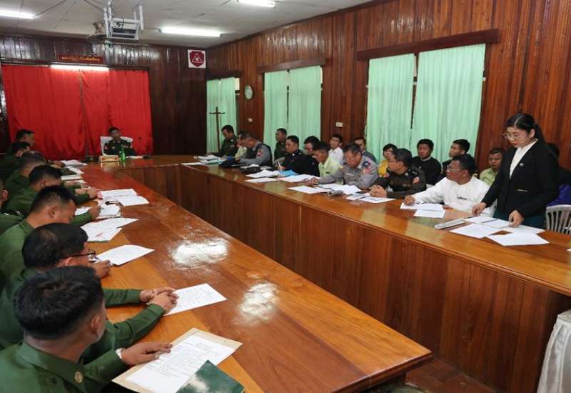 ရှမ်းပြည်နယ်(အရှေ့ပိုင်း)၊ မိုင်းတုံမြို့နယ်၌ ၂၀၂၅ ခုနှစ်၊ ပါတီစုံဒီမိုကရေစီအထွေထွေရွေးကောက်ပွဲအပိုင်း (၂) အောင်မြင်စွာကျင်းပနိုင်ရေး လုပ်ငန်းညှိနှိုင်းအစည်းအဝေးကို ယနေ့ညနေပိုင်းတွင် မိုင်းတုံမြို့ရှိ နယ်မြေခံတပ်ရင်းဌာနချုပ် အစည်းအဝေးခန်းမ၌ ပြုလုပ်ရာ တိုင်းမှူး ဗိုလ်ချုပ် စိုးလှိုင်နှင့် တာဝန်ရှိသူများ၊ ခရိုင်၊ မြို့နယ်ရွေးကောက်ပွဲကော်မရှင်အဖွဲ့ခွဲမှ တာဝန်ရှိသူများ၊ ဌာနေပြည်သူ့စစ်အဖွဲ့ဝင်များ၊ ဌာနဆိုင်ရာတာဝန်ရှိသူများနှင့် ဖိတ်ကြားထားသူများ တက်ရောက်ကြသည်။