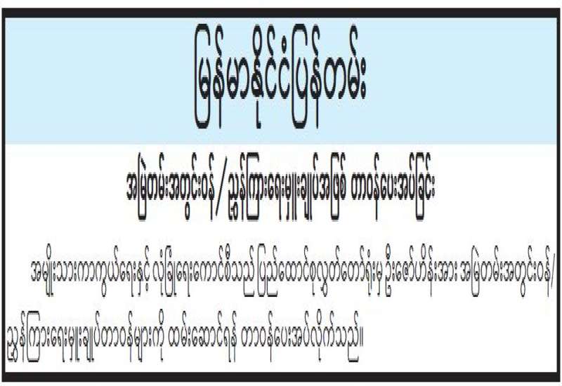 ၁။ စာပေနှင့်အနုပညာမူပိုင်ခွင့်ပိုင်ရှင်များနှင့် ဆက်နွှယ်သည့်အခွင့်အရေးပိုင်ရှင်များ၏ အခွင့်အရေး များကို ဥပဒေနှင့်အညီ အကာအကွယ်ပေးနိုင်ရန် စာပေနှင့် အနုပညာမူပိုင်ခွင့်ဥပဒေကို အမိန့်ကြော်ငြာစာ အမှတ် (၂၁၈/၂၀၂၃) ဖြင့် ၃၁-၁၀-၂၀၂၃ ရက်နေ့တွင် အာဏာသက်ဝင်ခဲ့ပြီးဖြစ်ပါသည်။ စာပေနှင့်အနုပညာလက်ရာများ၊ ဆက်နွှယ်သည့်အခွင့်အရေးဆိုင်ရာကိစ္စရပ်များကို မှတ်ပုံတင်ခြင်းဆိုင်ရာ နည်းဥပဒေများကို အမိန့်ကြော်ငြာစာအမှတ် (၇၀/၂၀၂၃) ဖြင့် ၂၃-၁၀-၂၀၂၃ ရက်နေ့တွင်လည်းကောင်း၊ မှတ်ပုံတင်လျှောက်ထားခြင်းအတွက် လိုအပ်သောလျှောက်လွှာပုံစံ (၁၃) မျိုးကို အမိန့်ကြော်ငြာစာအမှတ် (၇၃/၂၀၂၃) ဖြင့် ၂၀-၁၁-၂၀၂၃ ရက်နေ့တွင်လည်းကောင်း၊ မှတ်ပုံတင်လျှောက်ထားခြင်းဆိုင်ရာ ဝန်ဆောင်မှုအမျိုးအစားအလိုက် ပေးသွင်းရမည့်အခကြေးငွေများကို အမိန့်ကြော်ငြာစာအမှတ်(၁/၂၀၂၄) ဖြင့် ၁၃-၂-၂၀၂၄ ရက်နေ့တွင်လည်းကောင်း ထုတ်ပြန်ခဲ့ပြီးဖြစ်ပါသည်။ စာပေနှင့် အနုပညာမူပိုင်ခွင့် မှတ်ပုံတင်လျှောက်ထားခြင်းများကို ၉-၂-၂၀၂၄ ရက်နေ့တွင် စတင်လက်ခံဆောင်ရွက်နေပြီဖြစ်ပါသည်။