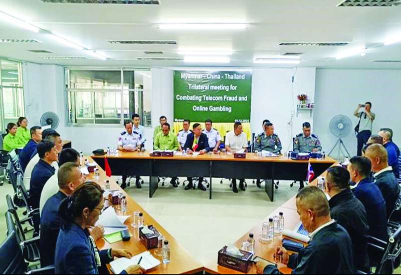 ထိုင်းနိုင်ငံအပါအဝင် အိမ်နီးချင်းနိုင်ငံအချို့ကို တစ်ဆင့်ခံဖြတ်သန်း၍ မြန်မာနိုင်ငံအတွင်းသို့ နယ်စပ်လမ်းကြောင်းများမှတစ်ဆင့် တရားမဝင်ဝင်ရောက်လာပြီး ကရင်ပြည်နယ် မြဝတီမြို့ - ရွှေကုက္ကိုလ်၊ မဲ့ထော်သလေး (KK Park) နှင့် ကျောက်ခတ်နယ်မြေများတွင် တရားမဝင်အွန်လိုင်းလောင်းကစားမှုများ၊ အွန်လိုင်းလိမ်လည်မှုများ၊ ဒုစရိုက်မှုများ ကျူးလွန်ခဲ့ကြသူများကို စစ်ဆေးဖော်ထုတ်လျက်ရှိရာ အွန်လိုင်းလိမ်လည်မှုနှင့် အွန်လိုင်းလောင်းကစားမှုများ တိုက်ဖျက်ရေးအတွက် မြန်မာ-တရုတ်-ထိုင်း သုံးနိုင်ငံပူးပေါင်းဆောင်ရွက်မှုကိုလည်း စဉ်ဆက်မပြတ် တိုးမြှင့်ဆောင်ရွက်လျက်ရှိသည်။