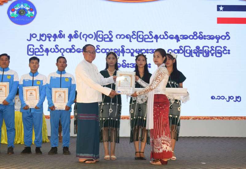 နှစ်(၇၀)ပြည့်ကရင်ပြည်နယ်နေ့အထိမ်းအမှတ် ပြည်နယ်ဂုဏ်ဆောင်ထူးချွန်သူများအား ဂုဏ်ပြုဆုချီးမြှင့်သည့် အခမ်းအနားကို နိုဝင်ဘာ ၈ ရက် နံနက် ၉ နာရီက ဘားအံမြို့ ဇွဲကပင်ခန်းမ၌ ကျင်းပသည်။