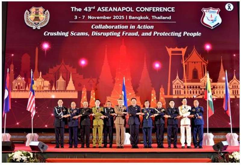 ထိုင်းနိုင်ငံ၊ ဗန်ကောက်မြို့ရှိ Grand Hyatt Erawan ဟိုတယ်၌ ၂၀၂၅ ခုနစ်၊ နိုဝင်ဘာလ ၃ ရက်မှ ၇ ရက်အထိ ကျင်းပပြုလုပ်ခဲ့သော (၄၃) ကြိမ်မြောက် အာဆီယံရဲအဖွဲ့ညီလာခံ (43rd ASEANAPOL Conference) သို့ မြန်မာနိုင်ငံရဲတပ်ဖွဲ့၊ ရဲချုပ် ဒုတိယရဲဗိုလ်ချုပ်ကြီး ဝင်းဇော်မိုး ဦးဆောင်သည့် ကိုယ်စားလှယ်အဖွဲ့ တက်ရောက်ခဲ့ကြပါသည်။