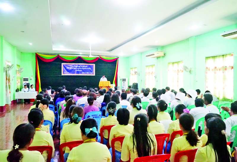 ကျန်းမာရေးဝန်ကြီးဌာန ကုသရေးဦးစီးဌာန၏လမ်းညွှန်မှု၊ မကွေးတိုင်းဒေသကြီး ကုသရေးဦးစီးဌာနဦးဆောင်မှုဖြင့် တိုင်းပြည်သူ့ဆေးရုံကြီး ဆေးဘက်ကျွမ်းကျင်(၃)(ဓာတ်မှန်)ခြောက်လသင်တန်းဆင်းပွဲကို ယနေ့နံနက်ပိုင်းက တိုင်းဒေသကြီးပြည်သူ့ဆေးရုံကြီး အစည်းအဝေးခန်းမ၌ ကျင်းပသည်။