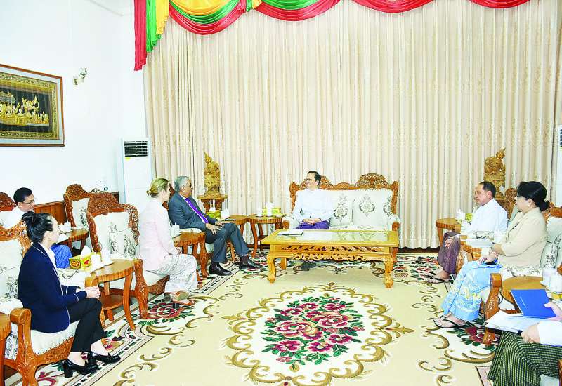 ကျန်းမာရေးဝန်ကြီးဌာန ပြည်ထောင်စုဝန်ကြီး ဒေါက်တာသက်ခိုင်ဝင်းသည် ဘန်ကောက်မြို့အခြေစိုက်ကုလသမဂ္ဂစီမံကိန်းဝန်ဆောင်မှုရုံး (UNOPS)၏ အာရှဒေသဆိုင်ရာရုံးညွှန်ကြားရေးမှူး Mr. Sanjay Mathur နှင့်ကိုယ်စားလှယ်အဖွဲ့အား ယနေ့ နံနက်ပိုင်းတွင် ကျန်းမာရေးဝန်ကြီးဌာနအစည်းအဝေးခန်းမ၌ လက်ခံတွေ့ဆုံသည်။