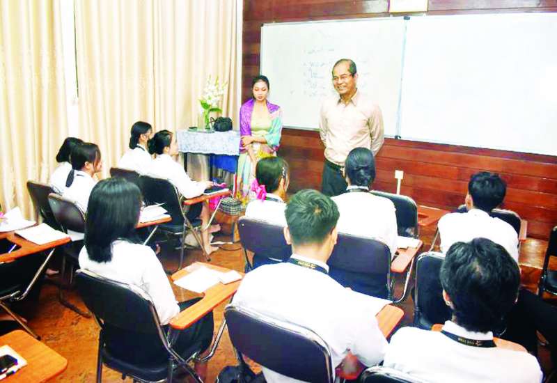 အလုပ်သမားဝန်ကြီးဌာန ဒုတိယဝန်ကြီး ဦးဝင်းရှိန်သည် ယနေ့နံနက်ပိုင်းတွင် ရန်ကုန်တိုင်းဒေသကြီးရှိ အလုပ်သမားရေးရာ တာဝန်ရှိသူများနှင့်အတူ ကမာရွတ်မြို့နယ်ရှိ National Management Academy တွင် ဟိုတယ်လုပ်ငန်းဆိုင်ရာ အသက်မွေးပညာသင်တန်းများ ဖွင့်လှစ်ပို့ချနေမှုများကို ကြည့်ရှုအားပေးသည်။