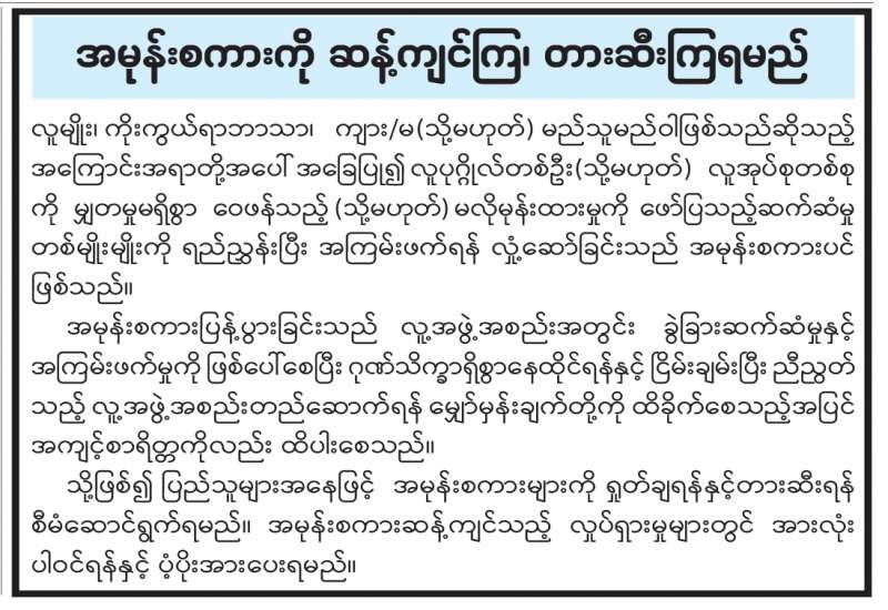 အမုန်းစကားကို ဆန့်ကျင်ကြ၊ တားဆီးကြရမည်