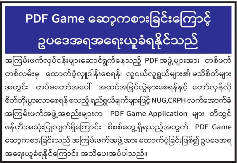PDF Game ဆော့ကစားခြင်းကြောင့် ဥပဒေအရ အရေးယူခံရနိုင်သည်