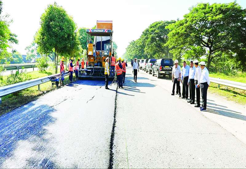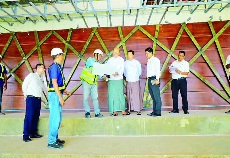 ဆောက်လုပ်ရေးဝန်ကြီးဌာန ဒုတိယဝန်ကြီး ဦးမျိုးမြင့်သည် ဌာနဆိုင်ရာတာဝန်ရှိသူများနှင့်အတူ ယနေ့နံနက်ပိုင်းတွင် မန္တလေးငလျင်ဒဏ်ကြောင့်ပျက်စီးသွားသော ရန်ကုန် - မန္တလေးအမြန်လမ်းမကြီး နေပြည်တော်-ရန်ကုန် လမ်းပိုင်းရှိ လမ်း၊ တံတားများပြန်လည်ပြုပြင်တည်ဆောက်ရေး လုပ်ငန်းဆောင်ရွက်နေမှုကို ကွင်းဆင်းကြည့်ရှုသည်။