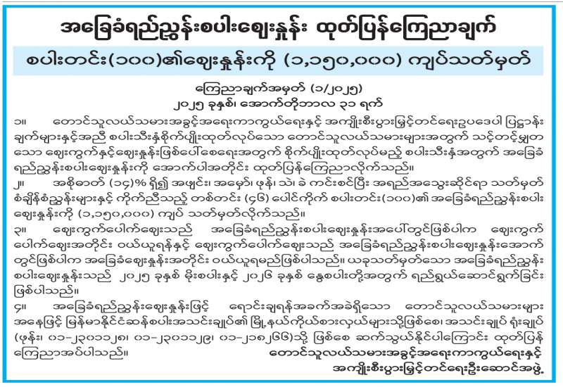အခြေခံရည်ညွှန်းစပါးဈေးနှုန်း ထုတ်ပြန်ကြေညာချက်