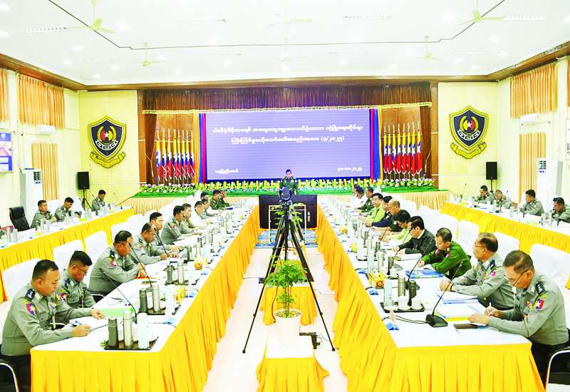 ပါတီစုံဒီမိုကရေစီအထွေထွေရွေးကောက်ပွဲကာလ လုံခြုံရေးဆိုင်ရာကြီးကြပ်မှု ဗဟိုကော်မတီအစည်းအဝေး(၄/၂၀၂၅)ကို ယနေ့မွန်းလွဲပိုင်းတွင် မြန်မာနိုင်ငံရဲတပ်ဖွဲ့ဌာနချုပ် အရိန္ဒမာခန်းမ၌ ကျင်းပသည်။
