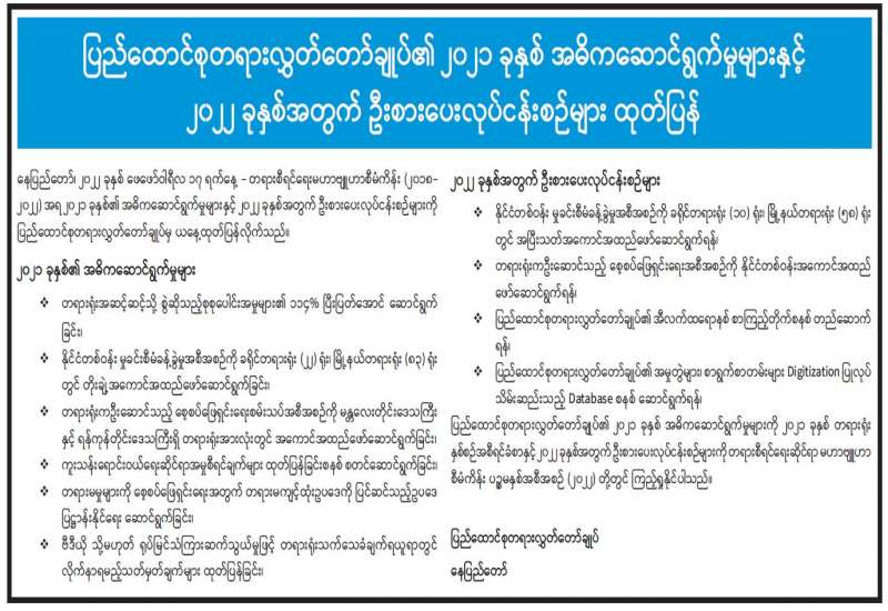 ပြည်ထောင်စုတရားလွှတ်တော်ချုပ်၏ ၂၀၂၁ ခုနှစ် အဓိကဆောင်ရွက်မှုများနှင့် ၂၀၂၂ ခုနှစ်အတွက် ဦးစားပေးလုပ်ငန်းစဉ်များထုတ်ပြန်