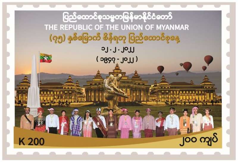 ပို့ဆောင်ရေးနှင့်ဆက်သွယ်ရေးဝန်ကြီးဌာန၊ မြန်မာ့စာတိုက်လုပ်ငန်းမှ (၇၅)နှစ်မြောက် စိန်ရတုပြည်ထောင်စုနေ့အထိမ်းအမှတ် အထူးထုတ် စာပို့တံဆိပ် ခေါင်းသစ် (၂၀၀/- ကျပ်တန်) (၃)မျိုးအား ၂၀၂၂ ခုနှစ်၊ ဖေဖော်ဝါရီ (၁၂)ရက်၊ မြန်မာသက္ကရာဇ် ၁၃၈၃ ခုနှစ်၊ တပို့တွဲလဆန်း (၁၂)ရက် (စနေနေ့)၊ နံနက် ၉ နာရီမှစတင်၍ နေပြည်တော် ဗဟိုစာတိုက်ကြီး၊ ရန်ကုန်စာတိုက်ကြီး၊ မန္တလေးစာတိုက်ကြီးတို့နှင့် တိုင်းဒေသကြီး/ ပြည်နယ်များရှိ စာတိုက်ကြီးများတွင် ရောင်းချပေးသွားမည် ဖြစ်သည်။