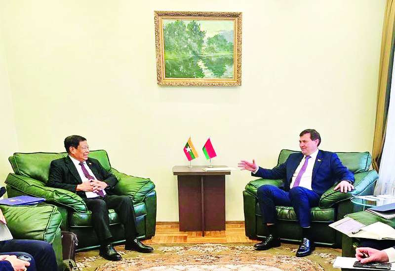 ရင်းနှီးမြှုပ်နှံမှုနှင့်နိုင်ငံခြားစီးပွားဆက်သွယ်ရေးဝန်ကြီးဌာန ပြည်ထောင်စုဝန်ကြီး ဒေါက်တာဝါဝါမောင်သည် ဟနွိုင်းမြို့အခြေစိုက် ဘယ်လာရုစ်သံရုံးမှ သံအမတ်ကြီး H.E. Mr. Uladzimir Baravikou ဦးဆောင်သော ကိုယ်စားလှယ်အဖွဲ့အား ယနေ့မွန်းလွဲပိုင်းတွင် နေပြည်တော်ရှိ ရင်းနှီးမြှုပ်နှံမှုနှင့်နိုင်ငံခြားစီးပွားဆက်သွယ်ရေးဝန်ကြီးဌာန၌ လက်ခံတွေ့ဆုံသည်။