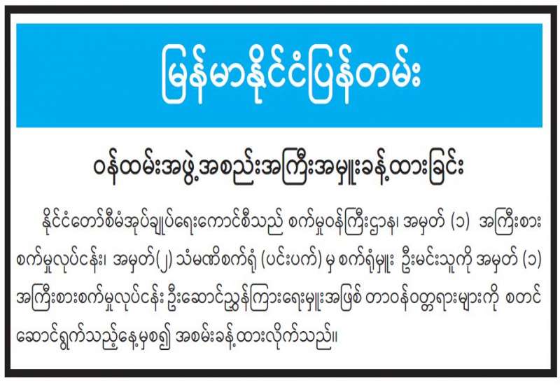 ၁။ နိုင်ငံတော်စီမံအုပ်ချုပ်ရေးကောင်စီသည် နိုင်ငံတော်တည်ငြိမ်ရေး၊ ဖွံ့ဖြိုးတိုးတက်ရေးနှင့် စစ်မှန်၍ စည်းကမ်းပြည့်ဝသော ပါတီစုံဒီမိုကရေစီစနစ်ထွန်းကားရေးတို့အတွက် ရှေ့လုပ်ငန်းစဉ် ၅ ရပ် ချမှတ် ဆောင်ရွက်လျက်ရှိပါသည်။ ရှေ့လုပ်ငန်းစဉ်၏ စတုတ္ထအချက်ဖြစ်သည့် “တစ်နိုင်ငံလုံးထာဝရ ငြိမ်းချမ်းရေး ရရှိရေးအတွက် တစ်နိုင်ငံလုံး ပစ်ခတ်တိုက်ခိုက်မှုရပ်စဲရေး သဘောတူစာချုပ် (NCA) ပါ သဘောတူညီချက်များအတိုင်း ဖြစ်နိုင်သမျှ အလေးထားလုပ်ဆောင်သွားမည်” ဟု အစိုးရအနေဖြင့် မူဝါဒချထားပါသည်။ အဆိုပါလုပ်ငန်းစဉ်ကို အကောင်အထည်ဖော်နိုင်ရန် နိုင်ငံတော်စီမံအုပ်ချုပ်ရေး ကောင်စီသည် ငြိမ်းချမ်းရေး လုပ်ငန်းစဉ်များအား စဉ်ဆက်မပြတ် အကောင်အထည်ဖော်လျက်ရှိပြီး ငြိမ်းချမ်းရေးနှင့်ပတ်သက်၍ NCA အတိုင်း အလေးထား အကောင်အထည်ဖော် ဆောင်ရွက်လျက် ရှိပါသည်။