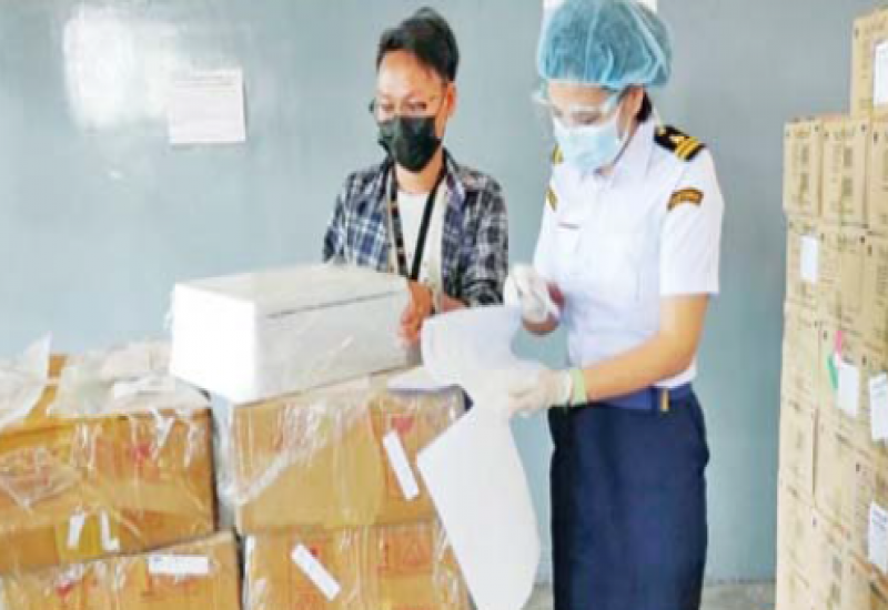 အကောက်ခွန်ဦးစီးဌာနအနေဖြင့် ကိုဗစ်-၁၉ ရောဂါကာကွယ်၊ ထိန်းချုပ်၊ ကုသရေးပစ္စည်းများကို နယ်စပ်ဂိတ်အသီးသီးမှ နေ့စဉ်လွယ်ကူချောမွေ့စွာ စစ်ဆေးထုတ်ပေးလျက်ရှိရာ ဇန်နဝါရီ ၂၉ ရက်၌ နယ်စပ်(ချင်းရွှေဟော်)တွင် ကုမ္ပဏီနှစ်ခုမှ Mask ၁၂၄၂၈ Kg ၊ Pai Cetirizine Tablet ၆၉၂၀၊ Pai Ome III Capsule ၂၆၀၊ Scalp Vein Set ၆၇၂၀၊ Disposable Syringe ၆၃၀ တို့ကို ထုတ်ပေးခဲ့ကြောင်း သတင်းရရှိသည်။
