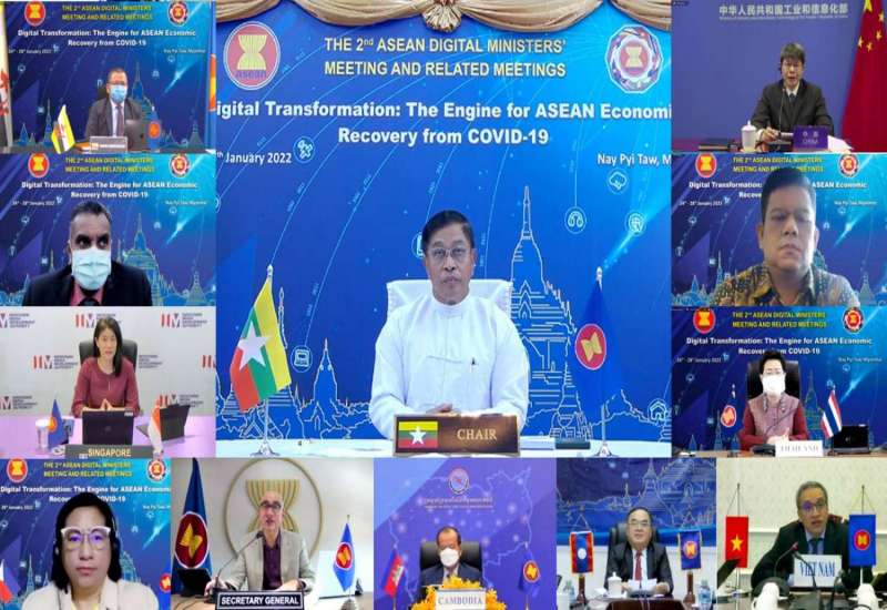 ဒုတိယအကြိမ်မြောက် အာဆီယံဒစ်ဂျစ်တယ်ဝန်ကြီးများအစည်းအဝေး၏ ဒုတိယနေ့ ကို (၂၈.၁.၂၀၂၂) ရက်နေ့တွင် ဆက်လက်ကျင်းပရာ ပို့ဆောင်ရေးနှင့်ဆက်သွယ်ရေးဝန်ကြီးဌာန ပြည်ထောင်စု ဝန်ကြီး ဗိုလ်ချုပ်ကြီး တင်အောင်စန်းနှင့် ဆွေးနွေးဖက်နိုင်ငံများဖြစ်သည့် တရုတ် ပြည်သူ့သမ္မတနိုင်ငံ၊ စက်မှုနှင့်သတင်းအချက်အလက်နည်းပညာ ဝန်ကြီးဌာန၊ ဒုတိယဝန်ကြီး H.E. Mr. Zhang Yunming နှင့် အိန္ဒိယနိုင်ငံ၊ ဆက်သွယ်ရေးဝန်ကြီးဌာန ဝန်ကြီး H.E. Mr. DEVUSINH CHAUHAN တို့က ပူးတွဲဥက္ကဋ္ဌများ အဖြစ် ဆောင်ရွက်ခဲ့ပါသည်။