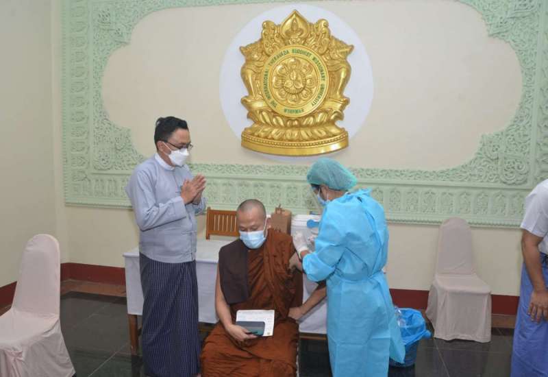 နိုင်ငံတော်သံဃမဟာနာယကအဖွဲ့ ဆရာတော်ကြီးများ၏ ဩဝါဒ၊ သာသနာရေးနှင့် ယဉ်ကျေးမှုဝန်ကြီးဌာန၏ လမ်းညွှန်မှုအရ Sinopharm ကိုဗစ်-၁၉ ရောဂါကာကွယ် ဆေးထိုးနှံခြင်းကို ဆောင်ရွက်လျက်ရှိရာ ယမန်နေ့က နိုင်ငံတော်သံဃမဟာနာယကအဖွဲ့၊ တာဝန်ကျ (ပထမအဖွဲ့ ခွဲ) ဆရာတော်ကြီး (၉)ပါး၊ ထေရဝါဒဗုဒ္ဓသာသနာပြု သြဝါဒါစရိယ ဆရာတော်ကြီးများနှင့် နိုင်ငံတော် ပရိယတ္တိသာသနာ့တက္ကသိုလ် (ရန်ကုန်) သင်ကြား/စီမံ၊ စာသင်သား သံဃာတော် (၂၄၉) ပါးတို့ကို ကာကွယ်ဆေးထိုးနှံခဲ့သည်။