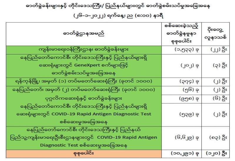 COVID-19 ရောဂါစောင့်ကြပ်ကြည့်ရှုမှုနှင့်ပတ်သက်၍ သတင်းထုတ်ပြန်ခြင်း (၂၆-၁-၂၀၂၂) ရက်နေ့၊ ည (၈:၀၀) နာရီ