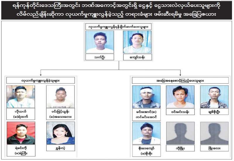 ၂၀၂၂ ခုနှစ်၊ ဇန်နဝါရီလ ၁၈ ရက်တွင် “kaung Wai Yan ’’ အမည်ဖြင့် လူမှုကွန်ယက် စာမျက်နှာ၌ ဘဏ်အကောင့်အတွင်းရှိ ငွေနှင့် ငွေသား လဲလှယ်လိုကြောင်း ဖော်ပြထားသည်ကို တွေ့ရှိရသဖြင့် မရမ်းကုန်းမြို့နယ်၊ တော်ဝင်အိမ်ရာ၊ တိုက်(H) နေ ဦးအောင်ခန့်ဖြိုးနှင့် ဒေါ်မျိုးသန္တာညွန့် တို့ ၂ ဦးသည် ငွေကျပ် ၅၉၅ သိန်းနှင့်အတူ YGN-3Q/9851 Swift အဖြူရောင်ယာဉ်ဖြင့် ရန်ကင်းမြို့နယ်၊ အမှတ်(၁၄)ရပ်ကွက်၊ မင်းရဲကျော်စွာလမ်း၌ ငွေသားလဲလှယ်မည့်သူများအား စောင့်ဆိုင်းနေစဉ် YGN-6D/6839 Mark-II အဖြူရောင်ယာဉ်ဖြင့် အမျိုးသား ၃ ဦးနှင့် အမျိုးသမီး ၂ ဦး ရောက်ရှိ လာပြီး ၎င်းတို့ ၂ ဦးအား လက်ထိပ်ခတ်ချုပ်နှောင်ကာ ၎င်းတို့၏ မော်တော်ယာဉ် အတွင်း ထည့်သွင်း၍ ငွေကျပ် ၅၉၅ သိန်းနှင့် ဒေါ်မျိုးသန္တာညွန့်၏ ပိုက်ဆံအိတ် အတွင်းမှ ငွေကျပ် ၃ သိန်း စုစုပေါင်း ငွေကျပ် ၅၉၈ သိန်းခန့်အား လုယက်ယူဆောင် ကာ ၎င်းတို့ စီးနင်းလာသည့် ယာဉ်ဖြင့် ထွက်ပြေးသွားခဲ့သည့် ဖြစ်စဉ်ဖြစ်ပွားခဲ့သည်။