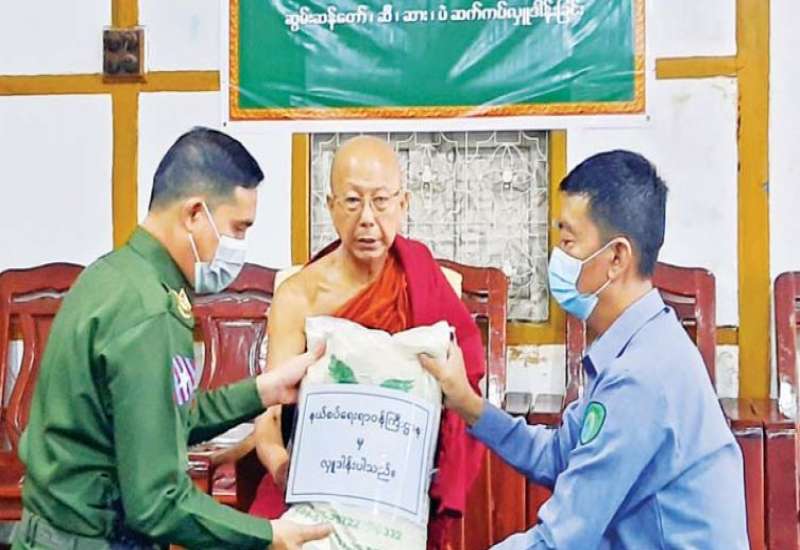 ကိုဗစ်-၁၉ ရောဂါ ကြိုတင်ကာကွယ်ရေးလုပ်ငန်းများ ဆောင်ရွက်နေသည့် ကာလအတွင်း ဆွမ်းကိစ္စရပ်များ အဆင်ပြေစေရန် ရည်ရွယ်၍ ပြည်ထဲရေး ဝန်ကြီးဌာန တပ်ဖွဲ့ဝင်/ ဝန်ထမ်း အရာထမ်း၊ အမှုထမ်း မိသားစုများက ယနေ့ နံနက်ပိုင်းတွင် မြို့နယ်အသီးသီးရှိ ဘုန်းတော်ကြီးကျောင်းများသို့ ဆွမ်းဆန် တော်များ ဆက်ကပ်လှူဒါန်းခြင်းကို ဆောင်ရွက်လျက်ရှိသည်။