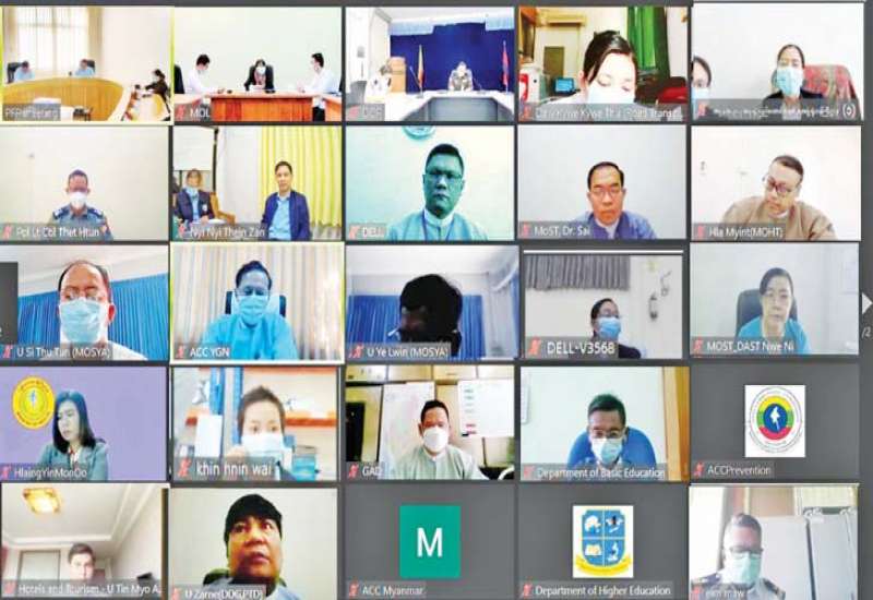 အဂတိလိုက်စားမှု တိုက်ဖျက်ရေးကော်မရှင်သည် ပြည်ထောင်စုဝန်ကြီးဌာန/အဖွဲ့အစည်း များတွင် အများ ပြည်သူထံမှ တုံ့ပြန်မှုရယူခြင်း အစီအစဉ် (Public Feedback Programme-PFP) အ ကောင်အထည်ဖော်ဆောင်ရွက်နေမှုနှင့် စပ်လျဉ်းသည့် ညှိနှိုင်းအစည်းအဝေးကို ယနေ့ နံနက် ၁၀ နာရီတွင် အဂတိလိုက်စားမှု တိုက်ဖျက်ရေးကော်မရှင်ရုံး၌ Virtual စနစ်ဖြင့် ကျင်းပရာကော်မရှင်အဖွဲ့ဝင်များ၊ ပြည်ထောင်စုဝန်ကြီးဌာန အဖွဲ့အစည်း ၁၂ ခုနှင့် ကော်မရှင်ရုံးတို့မှ တာဝန်ရှိသူများ တက်ရောက်ခဲ့ကြသည်။