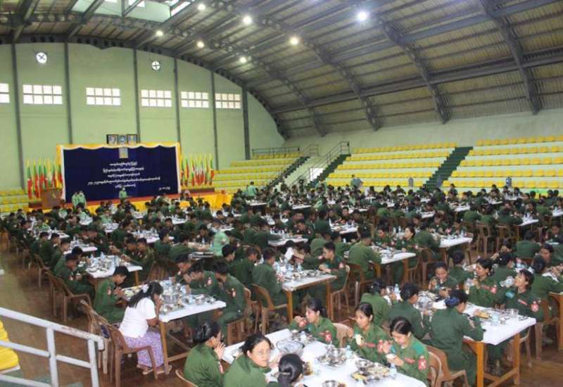ကာကွယ်ရေးဦးစီးချုပ်ရုံး(ကြည်း)၊ ပြည်သူ့စစ်နှင့်နယ်ခြားတပ်များ ညွန်ကြားရေးမှူးရုံး ကွပ်ကဲမှုအောက်ရှိ တက္ကသိုလ်လေ့ကျင့်ရေးတပ်များ၌ ကိုယ်တိုင်ဆန္ဒပြုသည့် တက္ကသိုလ်လေ့ကျင့်ရေးတပ်ဖွဲ့ဝင် ဆရာ၊ ဆရာမများနှင့် ကျောင်းသား၊ ကျောင်းသူများအား အခြေခံစစ်ပညာနှင့် တန်းမြင့်စစ်ပညာသင်တန်းများကို ဖွင့်လှစ်သင်ကြားပေးလျက်ရှိရာ ရန်ကုန်တိုင်းဒေသကြီး၊ မှော်ဘီမြို့ရှိ တက္ကသိုလ်လေ့ကျင့်ရေးတပ်၌ မိုးရာသီစခန်းချလေ့ကျင့်သင်တန်းတက်ရောက်လျက်ရှိသည့် တပ်ဖွဲ့ဝင် ဆရာ၊ ဆရာမများနှင့် ကျောင်းသား၊ ကျောင်းသူများ၏ လေ့ကျင့်သင်ကြားနေမှုများကို ယနေ့နံနက်ပိုင်းတွင် ရန်ကုန်တိုင်းစစ်ဌာနချုပ်တိုင်းမှူး ဗိုလ်ချုပ်ပြည့်စုံလင်းနှင့် တာဝန်ရှိသူများက သွားရောက်ကြည့်ရှုအားပေးသည်။
