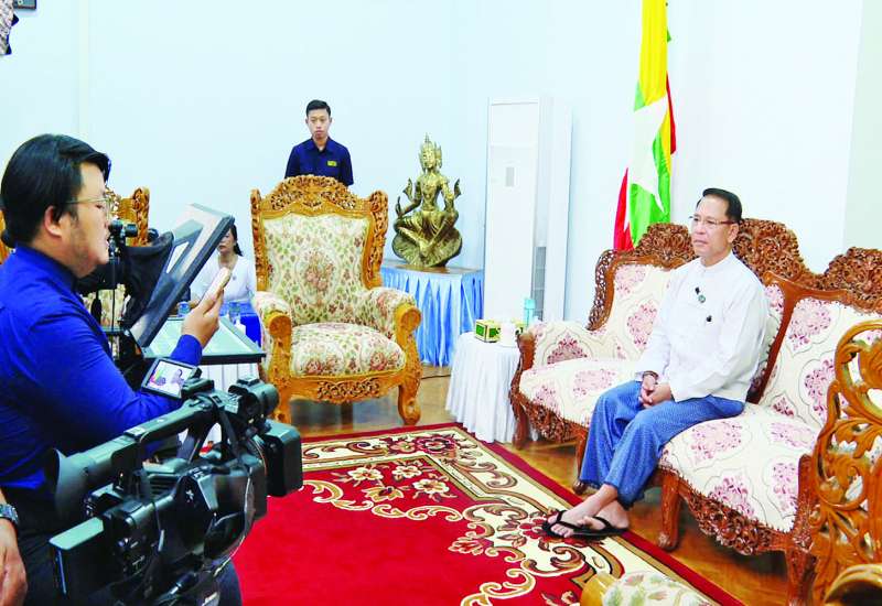 ပြန်ကြားရေးဝန်ကြီးဌာန ပြည်ထောင်စုဝန်ကြီး ဦးမောင်မောင်အုန်းသည် မြန်မာ့ရုပ်မြင်သံကြားနှင့် တရုတ်နိုင်ငံယူနန်ပြည်နယ်မှ Yunnan Media Group (YMG) တို့ ပူးပေါင်းရိုက်ကူးလျက်ရှိသည့် “လန်ချန်း-မဲခေါင် ရွှေရောင်အနာဂတ်များဆီသို့” ရုပ်သံမှတ်တမ်း အစီအစဉ်တွင် ပြန်ကြားရေးကဏ္ဍမှတစ်ဆင့် တရုတ်-မြန်မာ နှစ်နိုင်ငံပြည်သူများအကြား ချစ်ကြည်ရင်းနှီးမှုနှင့် နားလည်မှုတိုးမြှင့်လာစေရန် ဆောင်ရွက်ပေးမှုနှင့်စပ်လျဉ်း၍ ပူးပေါင်းရိုက်ကူးရေးအဖွဲ့၏ တွေ့ဆုံမေးမြန်းမှုကို ယနေ့နံနက်ပိုင်းတွင် ပြန်ကြားရေးဝန်ကြီးဌာန ဧည့်ခန်းမ၌ လက်ခံဖြေကြားသည်။