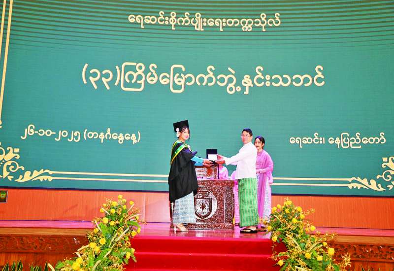 ရေဆင်းစိုက်ပျိုးရေးတက္ကသိုလ်၏ (၃၃)ကြိမ်မြောက်ဘွဲ့နှင်းသဘင်အခမ်းအနားကို ယနေ့နံနက်ပိုင်းက နေပြည်တော်ဇေယျာသီရိမြို့နယ် ရေဆင်းရှိ အဆိုပါတက္ကသိုလ် ဘွဲ့နှင်းသဘင်ခန်းမ၌ ကျင်းပသည်။