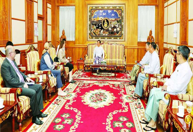 တိုင်းရင်းသားလူမျိုးများရေးရာဝန်ကြီးဌာန ဒုတိယဝန်ကြီး ဦးဇော်အေးမောင်သည် ယမန်နေ့က ပြည်ထောင်စုတိုင်းရင်းသားကျေးရွာ (ရန်ကုန်) အစည်းအဝေးခန်းမ၌ ဝန်ထမ်းများနှင့် တွေ့ဆုံသည်။