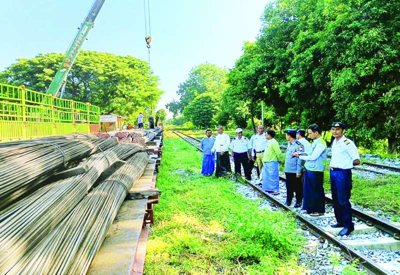 အမျိုးသားသဘာဝဘေးအန္တရာယ်ဆိုင်ရာစီမံခန့်ခွဲမှုကော်မတီအစီအစဉ်ဖြင့် ငလျင်ဘေးဒဏ်ပြန်လည်ထူထောင်ရေးနှင့်တည်ဆောက်ရေးလုပ်ငန်းများအတွက် လိုအပ်လျက်ရှိသော သံချောင်းလုံးများကို ရန်ကုန်မြို့မှ အထူးကုန်ရထားများဖြင့် ပို့ဆောင်ပေးလျက်ရှိသည်။
