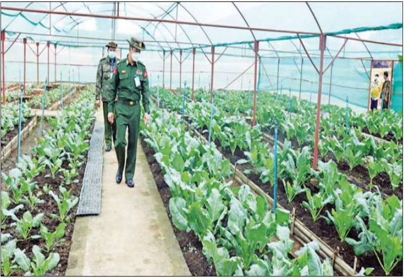 ဒေသတွင်းစားနပ်ရိက္ခာဖူလုံရေးနှင့် ပြည်သူများ၏ စားသောက်ရေးကို အထောက်အကူဖြစ်စေရန် အတွက် ယနေ့တွင် တြိဂံဒေသတိုင်းစစ်ဌာနချုပ်တိုင်းမှူး ဗိုလ်မှူးချုပ် မျိုးမင်းထွန်းနှင့် အဖွဲ့ဝင်များသည် တိုင်းစစ်ဌာနချုပ်၏ စိုက်ပျိုးမွေးမြူရေးလုပ်ငန်းများကို သွားရောက်ကြည့်ရှု၍ တာဝန်ရှိသူများနှင့် တွေ့ဆုံကာ ကုန်ထုတ်လုပ်မှုလုပ်ငန်းများ ရာနှုန်းပြည့်ဆောင်ရွက်နိုင်ရေးနှင့် လိုအပ်သည်များ ပေါင်းစပ်ညှိနှိုင်း ဆောင်ရွက်ပေးခဲ့ကြောင်း သတင်းရရှိသည်။
