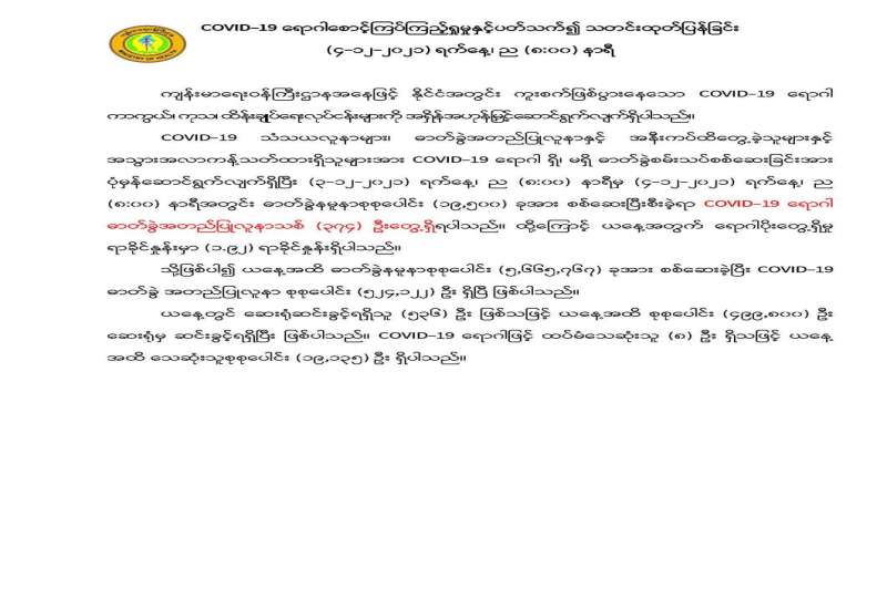 ကိုဗစ်-၁၉ ရောဂါ ကာကွယ်၊ ထိန်းချုပ်၊ ကုသရေး ဆောင်ရွက်ရာတွင် ကာကွယ်ဆေးထိုးနှံခြင်းသည် အဓိကအခန်းကဏ္ဍတွင် ပါဝင်သည့် လုပ်ငန်းတစ်ရပ် ဖြစ်သောကြောင့် တိုင်းဒေသကြီးနှင့် ပြည်နယ်အသီးသီးတို့၌ သံဃာတော်များ၊ သာသနာနွယ်ဝင်သီလရှင်များ၊ ဘာသာရေးခေါင်းဆောင်များ အပါအဝင် လူမျိုးမရွေး ဘာသာမရွေး အသက် ၄၀ နှစ်အထက် ဒေသခံပြည်သူများ၊ အကျဉ်းသား၊ အကျဉ်းသူများ၊ မသန်စွမ်းသူများ၊ တိုင်းရင်းသားလက်နက်ကိုင် အဖွဲ့များ၊ နာတာရှည်ရောဂါအခံ ရှိသူများ၊ ကယ်ဆယ်ရေးစခန်းများ၊ ယာယီတိုက်ပွဲရှောင်စခန်းများ အတွင်းရှိ ပြည်သူများ၊ အသက်(၁၂)နှစ်အထက် အခြေခံပညာအလယ်တန်းနှင့် အထက်တန်းအဆင့် ကျောင်းသား၊ ကျောင်းသူများစသည့် ဦးတည်အုပ်စုများ သတ်မှတ်၍ တပ်မတော်မှ ဆေးအဖွဲ့များ၊ ပြည်သူ့ဆေးရုံများမှ ဆရာဝန်များ၊ သူနာပြုများ၊ ကျန်းမာရေး ဝန်ထမ်းများနှင့် စေတနာ့ဝန်ထမ်းများက ကာကွယ်ဆေးထိုးခြင်း လုပ်ငန်းများကို အင်တိုက်အားတိုက် ဆောင်ရွက်ပေးလျက်ရှိသည်။