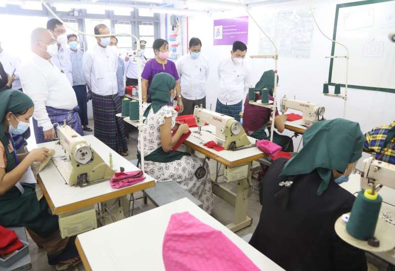 အလုပ်သမားဝန်ကြီးဌာန ပြည်ထောင်စုဝန်ကြီး ဦးမြင့်ကြိုင်၊ ဒုတိယဝန်ကြီးများ ဖြစ်ကြသည့် ဦးဝင်းရှိန်၊ ဦးကိုကိုလွင်နှင့် တာဝန်ရှိသူများသည် ယနေ့နံနက်ပိုင်းတွင် နေပြည်တော်၊ ဒက္ခိဏသီရိမြို့နယ်ရှိ Maple Win Naypyitaw Co., Ltd အထည်ချုပ်စက်ရုံ Assessment Center သို့ ရောက်ရှိပြီး နေပြည်တော်တွင် ကျွမ်းကျင်လုပ်သားများ ပေါ်ပေါက်လာရေးအတွက် မြန်မာနိုင်ငံလုပ်သားများ ကျွမ်းကျင်မှု “စံ” သတ်မှတ် ပြဋ္ဌာန်းရေးအဖွဲ့မှ အထည်ချုပ်လုပ်သား များ၏ ကျွမ်းကျင်မှုစစ်ဆေးအကဲဖြတ်နေခြင်းကို ကြည့်ရှုစစ်ဆေးသည်။