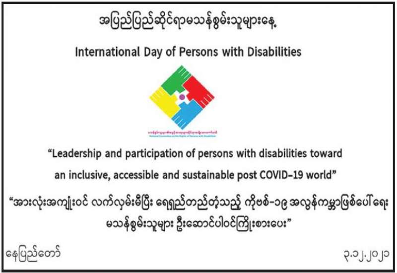 ၂၀၂၁ ခုနှစ် ဒီဇင်ဘာ ၃ ရက်တွင် ကျရောက်မည့် အပြည်ပြည်ဆိုင်ရာ မသန်စွမ်းသူများနေ့ အထိမ်းအမှတ်အခမ်းအနားကို ဂုဏ်ပြုကြိုဆိုသောအားဖြင့် အွန်လိုင်းဉာဏ်စမ်းပဟေဠိပြိုင်ပွဲကို ပြုလုပ်သွားမည် ဖြစ်ပါသည်။