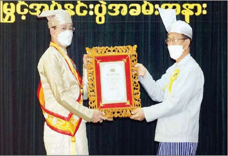 ၂၀၂၁ ခုနှစ် သာသနာတော်ဆိုင်ရာ သာသနာနုဂ္ဂဟဘွဲ့ တံဆိပ်များ ချီးမြှင့်အပ်နှင်းပွဲ အခမ်းအနားကို ယနေ့ မွန်းလွဲ ၁ နာရီတွင် နေပြည်တော်ကောင်စီရုံး ဇမ္ဗူသီရိခန်းမ၌ ကျင်းပသည်။
