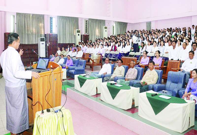 ပြည်ထောင်စုသမ္မတမြန်မာနိုင်ငံတော်ယာယီသမ္မတ နိုင်ငံတော်လုံခြုံရေးနှင့်အေးချမ်း သာယာရေးကော်မရှင်ဥက္ကဋ္ဌ ဗိုလ်ချုပ်မှူးကြီး မင်းအောင်လှိုင်သည် ပြည်ထောင်စုတိုင်းရင်းသား လူမျိုးများဖွံ့ဖြိုးရေးတက္ကသိုလ် ပညာရေးဘွဲ့ ၅ နှစ်သင်တန်းအမှတ်စဉ်(၇)မှ ကျောင်းသား၊ ကျောင်းသူများကို ယနေ့နံနက်ပိုင်းတွင် နေပြည်တော်ရှိ မြန်မာအပြည်ပြည်ဆိုင်ရာကွန်ဗင်းရှင်း ဗဟိုဌာန(၁)(MICC-1)၌ တွေ့ဆုံအမှာစကားပြောကြားသည်။