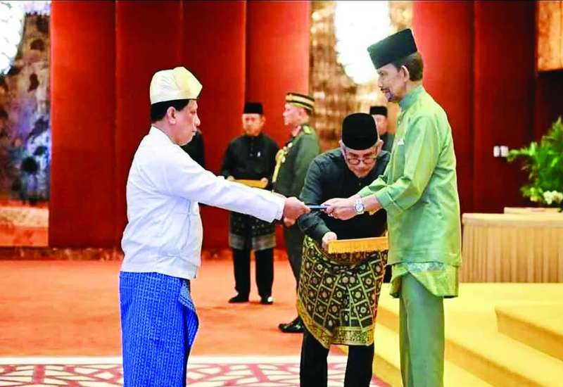ဘရူနိုင်းဒါရူဆလမ်နိုင်ငံဆိုင်ရာ အထူးအာဏာကုန်လွှဲအပ်ခြင်းခံရသော ပြည်ထောင်စုသမ္မတမြန်မာ နိုင်ငံတော်သံအမတ်ကြီး ဦးစိန်ဦးသည် ၎င်း၏ခန့်အပ်လွှာကို ၂၀၂၅ ခုနှစ် အောက်တိုဘာ ၁၈ ရက်တွင် ဘရူနိုင်းဒါရူဆလမ်နိုင်ငံ အီစတာနာနန်းတော်၌ ဘရူနိုင်းဒါရူဆလမ်နိုင်ငံဘုရင်မင်းမြတ် ဆူလ်တန် ဟာဂျီ ဟာဆာနာလ် ဘိုလ်ကီးယား မူအစ်ဇာဒင်ဝါဒိုလာ အဗ်နီအယ်လ်မာဟွန် ဆူလ်တန်ဟာဂျီအိုမာအလီ ဆိုင်ဖူဒင် ဆအာဒူလ်ခိုင်ရီဝါဒင်ထံသို့ ပေးအပ်ခဲ့ပြီး ဖြစ်သည်။