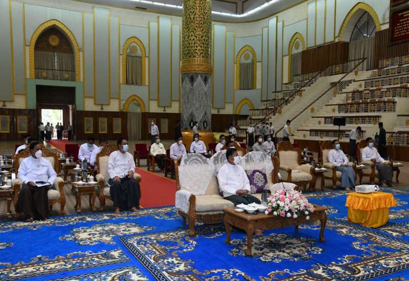 နိုင်ငံတော်စီမံအုပ်ချုပ်ရေးကောင်စီ ဥက္ကဋ္ဌ၊ နိုင်ငံတော်ဝန်ကြီးချုပ် ဗိုလ်ချုပ်မှူးကြီး မင်းအောင်လှိုင်သည် ယနေ့မွန်းလွဲပိုင်းတွင် စာပေ၊ ရုပ်ရှင်၊ သဘင်၊ ဂီတ အနုပညာရှင်များနှင့် ရန်ကုန်တိုင်းစစ်ဌာနချုပ်၊ ကုန်းမြင့်သာရှိ ဇေယျာသီရိဗိမာန် ဧည့်ခန်းမဆောင်တွင် တွေ့ဆုံပြီး စာပေ၊ ရုပ်ရှင်၊ သဘင်၊ ဂီတပိုင်းဆိုင်ရာ ကဏ္ဍများမှတဆင့် နိုင်ငံတော် ဖွံ့ဖြိုးတိုးတက်ရေး လုပ်ဆောင်နိုင်မည့် အခြေအနေများနှင့် ပတ်သက်၍ ဆွေးနွေး ပြောကြားသည်။