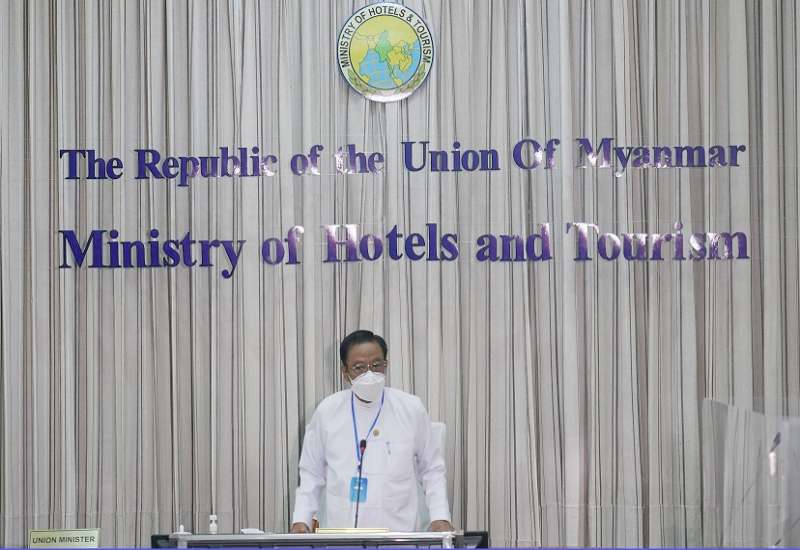 ခရီးသွားလုပ်ငန်းကော်မတီ ဥက္ကဋ္ဌ၊ ဟိုတယ်နှင့်ခရီးသွားလာရေးဝန်ကြီးဌာန ပြည်ထောင်စု ဝန်ကြီး ဒေါက်တာဌေးအောင် သည် နေပြည်တော်ကောင်စီအပါအဝင် တိုင်းဒေသကြီး / ပြည်နယ် အစိုးရအဖွဲ့များမှ ဟိုတယ်နှင့်ခရီးသွားလုပ်ငန်းကို တာဝန်ယူဆောင်ရွက် နေသော ဝန်ကြီးများနှင့် ခရီးသွားလုပ်ငန်းအကောင်အထည်ဖော်ရန်နှင့် ခရီးသွားမြှင့်တင်မှု များကို ပိုမိုကျယ်ပြန့်စွာ ဆောင်ရွက်နိုင်ရေး ညှိနှိုင်းအစည်းအဝေးကို ယနေ့ နံနက်ပိုင်းတွင် ဝန်ကြီးဌာန နီလာအစည်းအဝေး ခန်းမ ၌ ဗီဒီယိုကွန်ဖရင့်စနစ်ဖြင့် ကျင်းပသည်။
