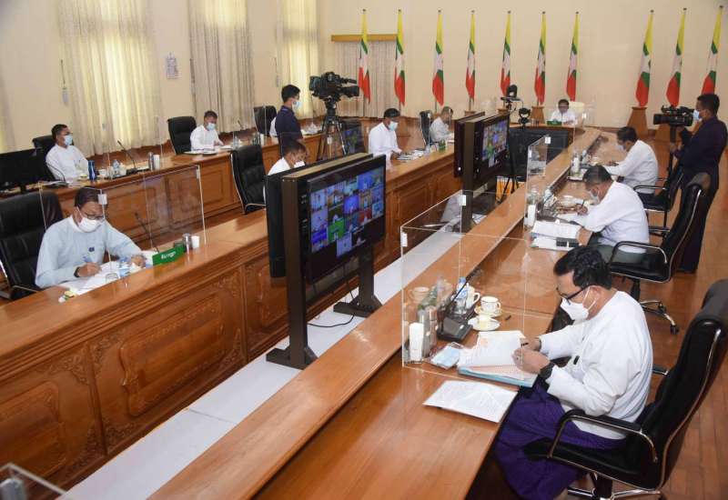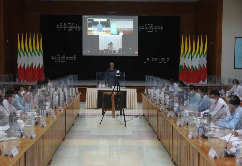 ကိုဗစ် - ၁၉ ရောဂါ ကာကွယ်၊ ထိန်းချုပ်၊ ကုသရေးဆိုင်ရာ (၁၃)ကြိမ်မြောက် ညှိနှိုင်း အစည်းအဝေးကို ယနေ့နံနက်ပိုင်းတွင် နေပြည်တော်ရှိ ဘုရင့်နောင်ရိပ်သာ အစည်းအဝေး ခန်းမ၌ ကျင်းပပြုလုပ်ရာ နိုင်ငံတော်စီမံအုပ်ချုပ်ရေးကောင်စီ ဥက္ကဋ္ဌ၊ ပြည်ထောင်စုသမ္မတ မြန်မာ နိုင်ငံတော်၊ နိုင်ငံတော်ဝန်ကြီးချုပ် ဗိုလ်ချုပ်မှူးကြီး မင်းအောင်လှိုင် တက်ရောက် အမှာစကားပြောကြားသည်။