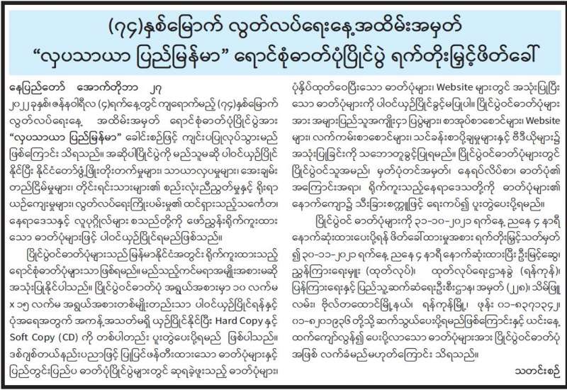 (၂၀၂၁ ခုနှစ်၊ အောက်တိုဘာလ (၂၈)ရက်နေ့ မြန်မာစံတော်ချိန်(၁၄:၀၀)နာရီအချိန် ထုတ်ပြန်ချက်)