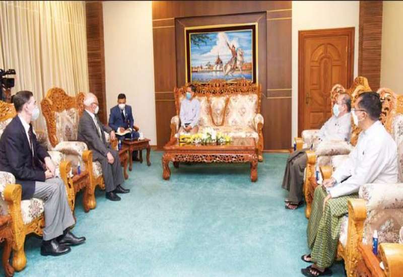 အပြည်ပြည်ဆိုင်ရာ ပူးပေါင်းဆောင်ရွက်ရေးဝန်ကြီးဌာန ပြည်ထောင်စုဝန်ကြီး ဦးကိုကိုလှိုင်သည် ရုရှား-မြန်မာ ချစ်ကြည်ရေးနှင့် ပူးပေါင်းဆောင်ရွက်ရေးအသင်း ဒုတိယဥက္ကဋ္ဌ Mr. Anatoly Bulochnikov ဦးဆောင်သော ကိုယ်စားလှယ်အဖွဲ့ကို ယနေ့မွန်းလွဲ ၂ နာရီတွင် နေပြည်တော် ရုံးအမှတ်(၉)ရှိ ပြည်ထောင်စုဝန်ကြီး၏ ဧည့်ခန်းမ၌ လက်ခံတွေ့ဆုံသည်။