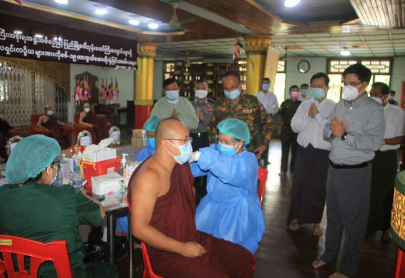 ကျန်းမာရေးဝန်ကြီးဌာနသည် ကိုဗစ်-၁၉ ရောဂါ ကာကွယ်ဆေးထိုးနှံခြင်းကို ဦးတည် အုပ်စုများနှင့် ဦးစားပေးအစီအစဉ်များအလိုက် အရှိန်အဟုန်မြှင့်တင်ဆောင်ရွက် လျက်ရှိရာ သီတင်းကျွတ်ရက်မြတ်ကာလအတွင်း သာသနာ့နွယ်ဝင် ဦးတည်အုပ်စုဖြစ်သည့် ဆရာ တော်/ သံဃာတော်များ၊ သီလရှင်များနှင့် ကပ္ပိယများအား ကိုဗစ်-၁၉ ရောဂါ ကာကွယ်ဆေး ထိုးနှံပေး နေမှုများကို အရှိန်အဟုန်မပျက်ဆက်လက်ဆောင်ရွက်လျက်ရှိသည်။